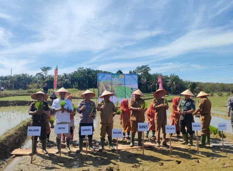 ROKAN HULU – Dalam suasana penuh semangat kebersamaan dan gotong royong, Wakapolres Rokan Hulu KOMPOL Rahmat Hidayat, SIK. turut ambil bagian dalam kegiatan Tanam Bersama Padi Sawah, sekaligus menghadiri Serah Terima Bantuan Alat dan Mesin Pertanian (Alsintan) serta Benih Padi, serta Temu Ramah Penyuluh Pertanian se-Kabupaten Rokan Hulu, yang digelar pada Senin, (21/04/2025), bertempat di Desa Pasir Maju, Kecamatan Rambah.