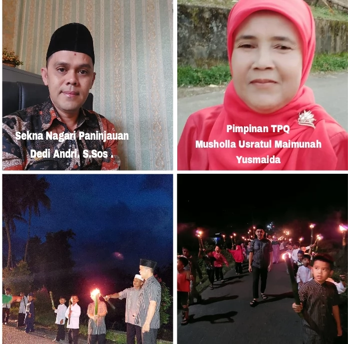 NAGARI PANINJAUAN – Memperingati moment penting dan hari besar Islam Isra Mi’raj, masyarakat,para pemuda-pemudi serta anak anak TPQ mushalla Usratul Maimunah Nagari Paninjauan Kecamatan Tanjung Raya Kabupaten Agam mengelar pawai obor.