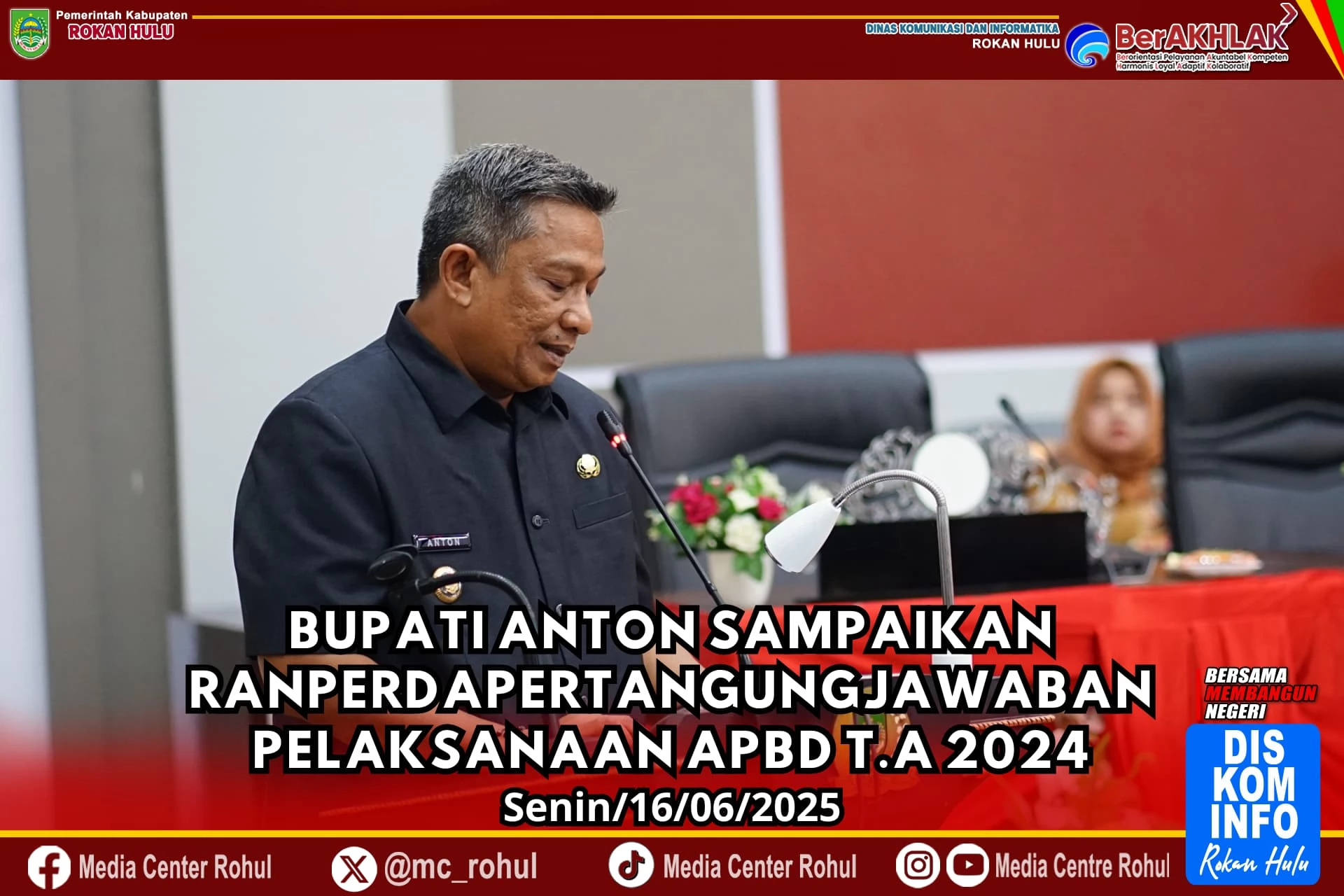 Dalam laporannya Bupati Rokan Hulu Anton, ST, MM mengatakan pertanggungjawaban pelaksanaan APBD Tahun anggaran 2024 disampaikan merupakan laporan informasi yang telah diaudit oleh BPK RI dan laporan hasil audit BPK RI atas laporan keuangan pemerintah daerah Kabupaten Rokan Hulu telah diterima pada senin 26 Mei 2025 dan Rokan Hulu masih dapat mempertahankan opini wajar tanpa pengecualian WTP sampai dengan laporan keuangan tahun 2024.