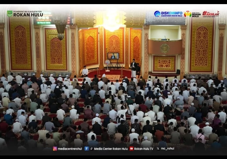ROKAN HULU Pemerintah Daerah Kabupaten Rokan Hulu menyelenggarakan Shalat Hari Raya Idul Fitri 1447 H / 2026 M yang dipusatkan di Masjid Agung Islamic Center Rokan Hulu, Sabtu (21/03/2026).