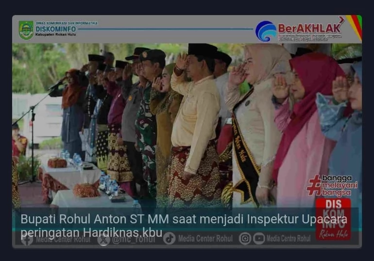 “Dengan semangat Hardiknas 2025, mari kita jadikan pendidikan sebagai pilar utama dalam membangun masa depan bangsa yang cerah dan berkeadilan,” pungkasnya. Turut hadir mengikuti upacara, Wakil Bupati Rohul H.Syafaruddin Poti,SH,MM, Ketua DPRD Rohul Hj.Sumiartini, Ketua TP PKK dr.Yeni Dwi Putri Anton, serta pejabat Eselon 2 dilingkungan Pemerintah Rohul