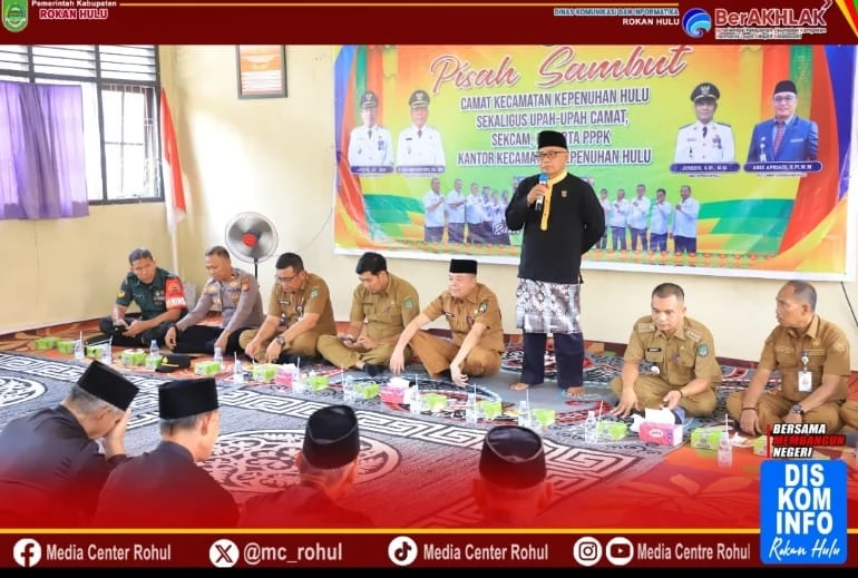 Rokan Hulu — Suasana penuh kehangatan terasa dalam kegiatan Pisah Sambut Camat Kepenuhan Hulu, Kegiatan lain juga dilaksanakan beriringan yaitu penyambutan Sekretaris Camat (Sekcam) yang baru sekaligus dirangkaikan dengan Tradisi Upah-Upah Adat bagi Camat dan Sekcam, serta perayaan kelulusan 10 Pegawai Pemerintah dengan Perjanjian Kerja (PPPK) yang bertugas di lingkungan Kantor Kecamatan Kepenuhan Hulu. Kegiatan dilaksanakan di Aula Kantor Camat Kepenuhan Hulu Selasa, (08/07/2025).