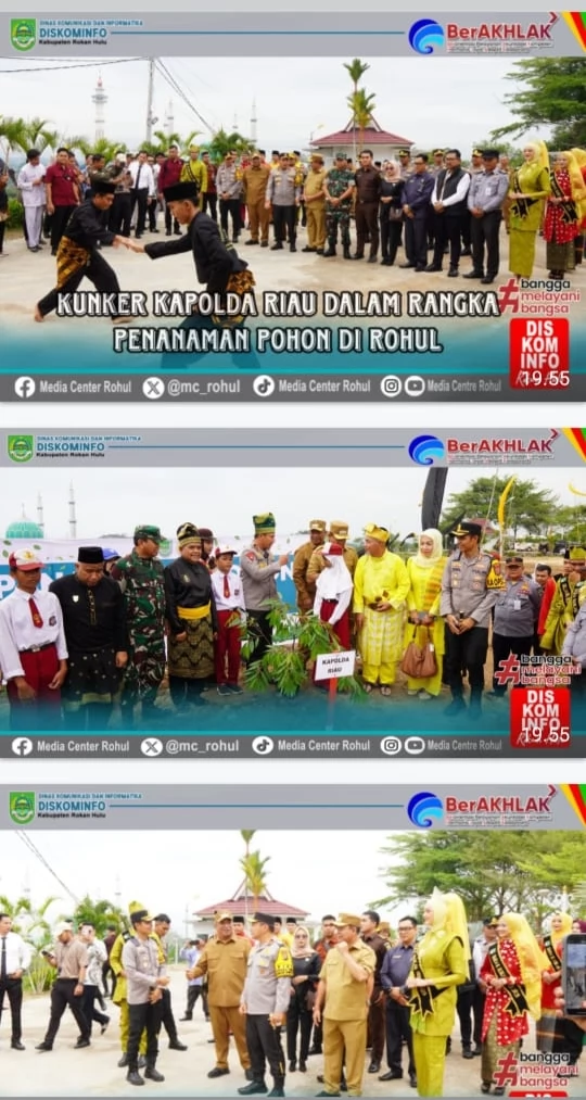 Rokan Hulu—Kapolda Riau Dr. Herry Heryawan, S.I.K., M.H., M.Hum didampingi PJU Polda Riau melakukan kunjungan kerja ke Rokan Hulu dalam acara penanaman bibit pohon di lahan yang terletak disamping rumah dinas Bupati Rokan Hulu, pada Jumat (25/07/2025).