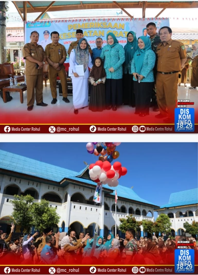 Launching Pemeriksaan kesehatan gratis (PKG) di sekolah di tandai dengan pelepasan Balon oleh Ketua TP PKK Rokan Hulu dr. Yeni Dwi Putri bertempat SD N 002 Rambah, Selasa (12/08/2025).